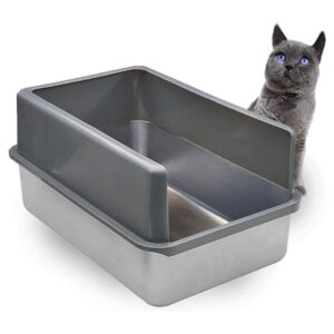 Kichwit Extra Large Stainless Steel Open Cat Litter Box with High Sides